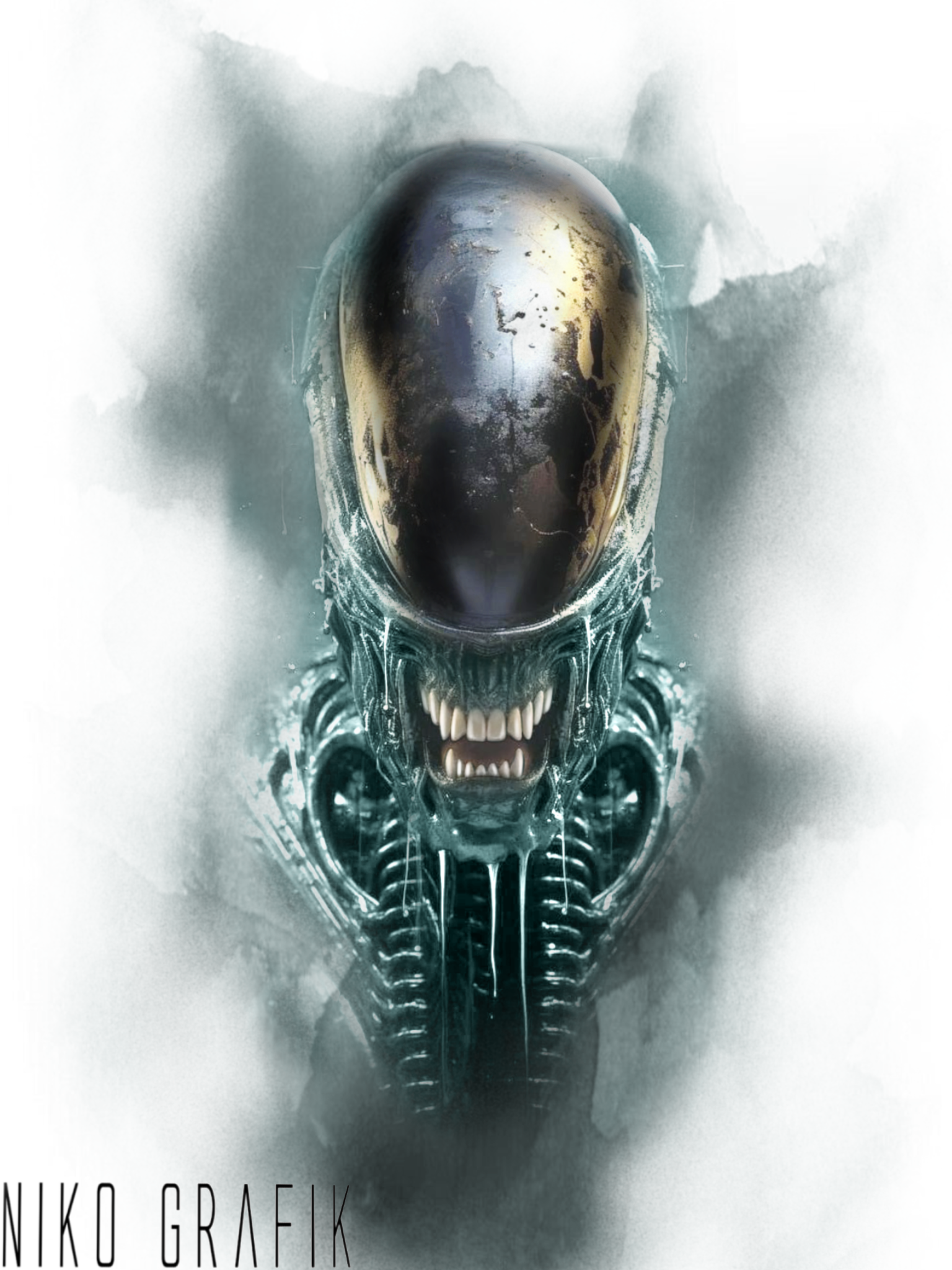 Le style biomécanique plonge ses racines dans les visions sombres et organo‑métalliques popularisées par Alien. Giger avait l'art de mêler organes, tubes et structures industrielles en une seule entité cohérente, comme si la chair n'avait jamais existé sans la machine. Cette fusion a profondément marqué les tatoueurs, en offrant un vocabulaire visuel puissant : textures métalliques, cavités anatomiques réinventées, membres transformés en systèmes mécaniques.