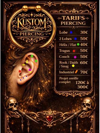 | Composition oreille (3 piercings) | 120€ |